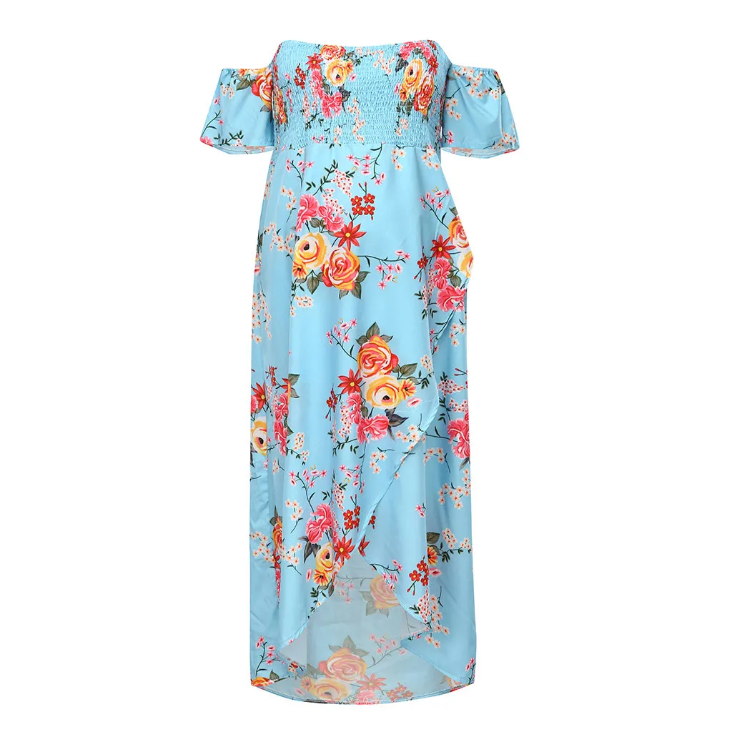 Женское платье для беременных с принтом и открытыми плечами, короткий рукав сарафана, лето