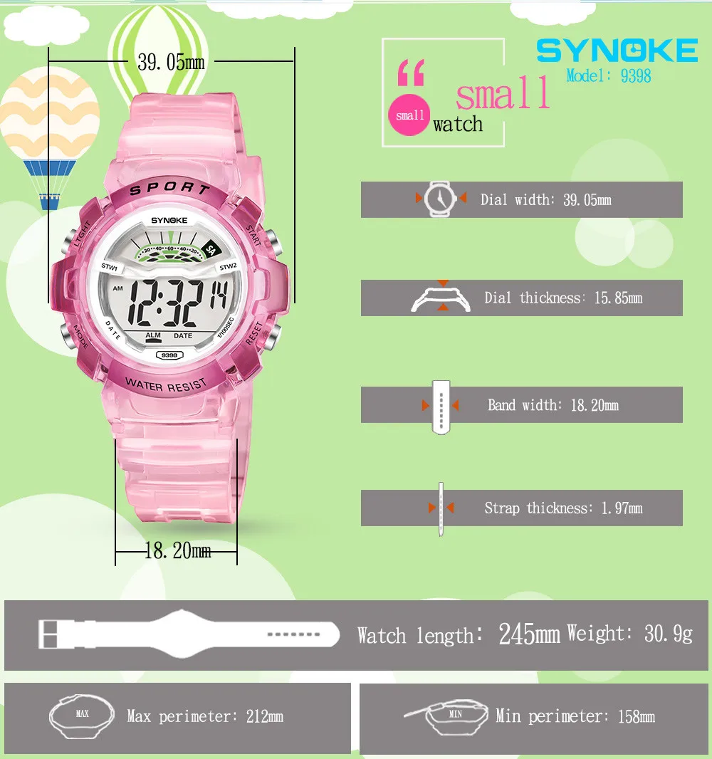 Высококачественный корпус из АБС-пластика, высококачественный ремешок из полиуретана, толстое и твердое зеркало из смолы, нижняя крышка из нержавеющей стали, Пряжка из нержавеющей стали.
