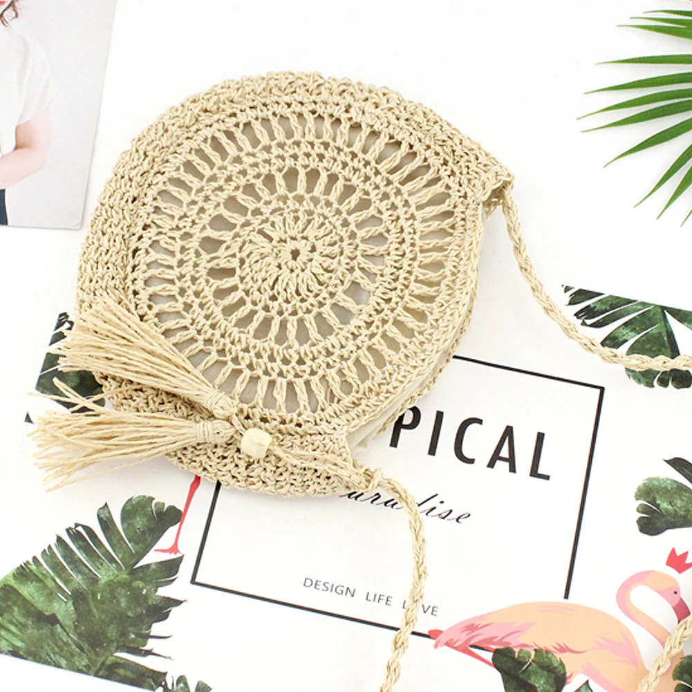 Новая мода, женская соломенная сумка, летняя пляжная сумка из ротанга через плечо