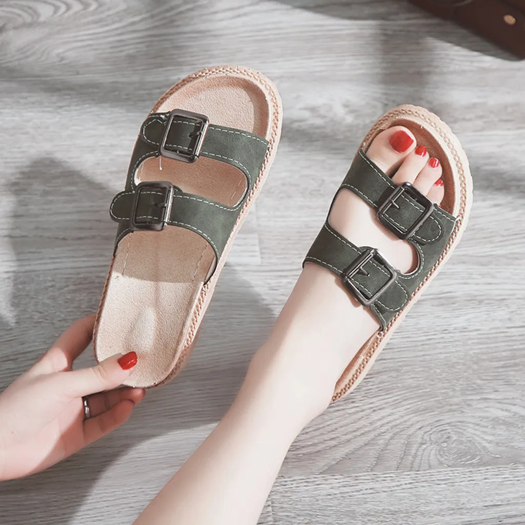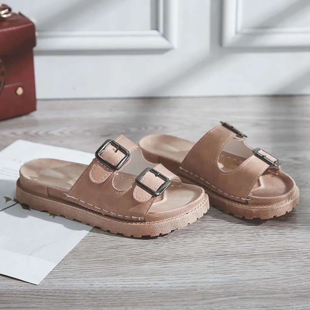 Модная летняя повседневная обувь; Тапочки; Женская обувь на плоской подошве; Кожаная пляжная обувь с пряжкой; Тапочки