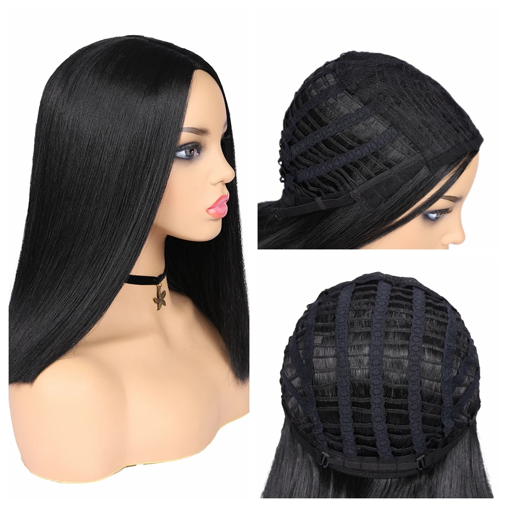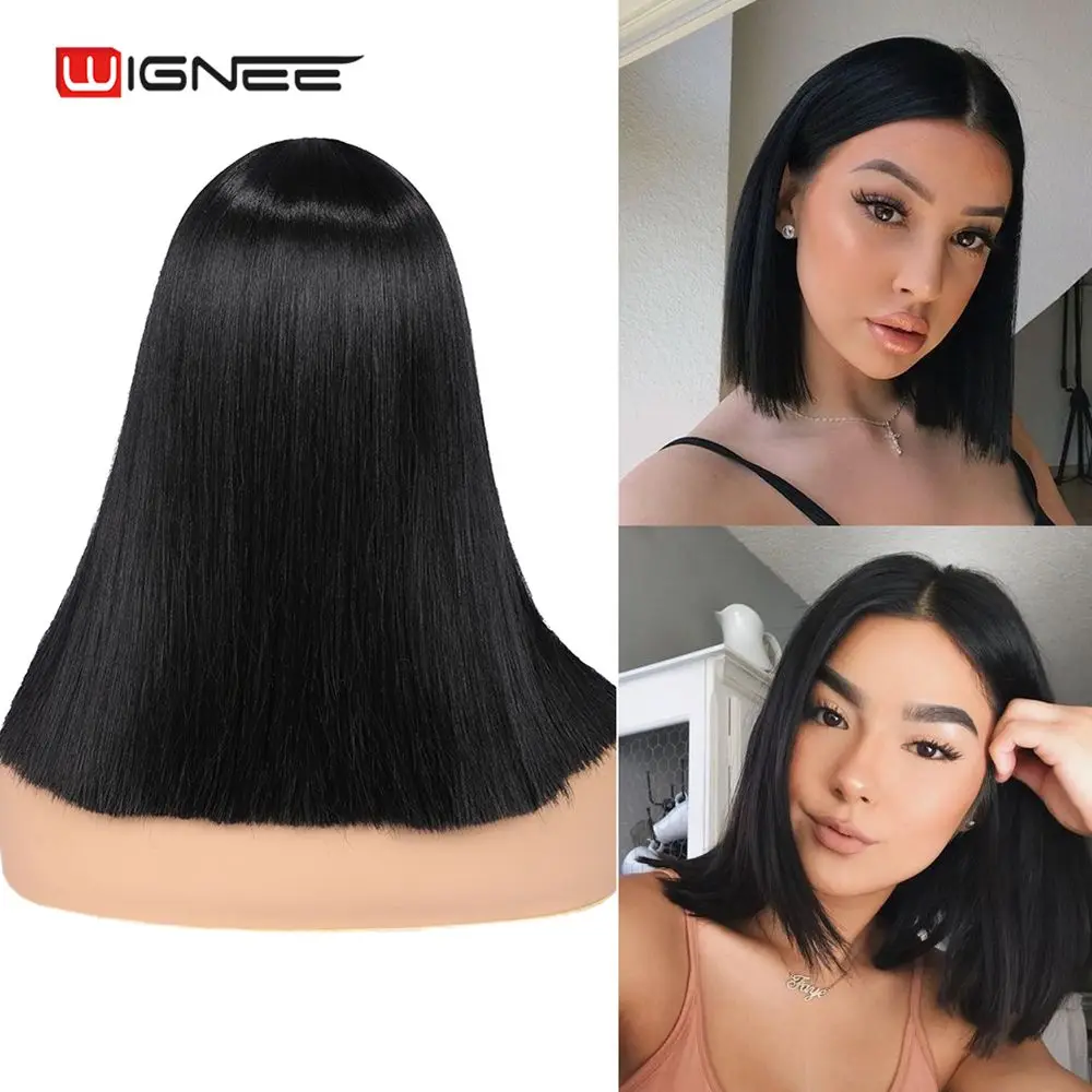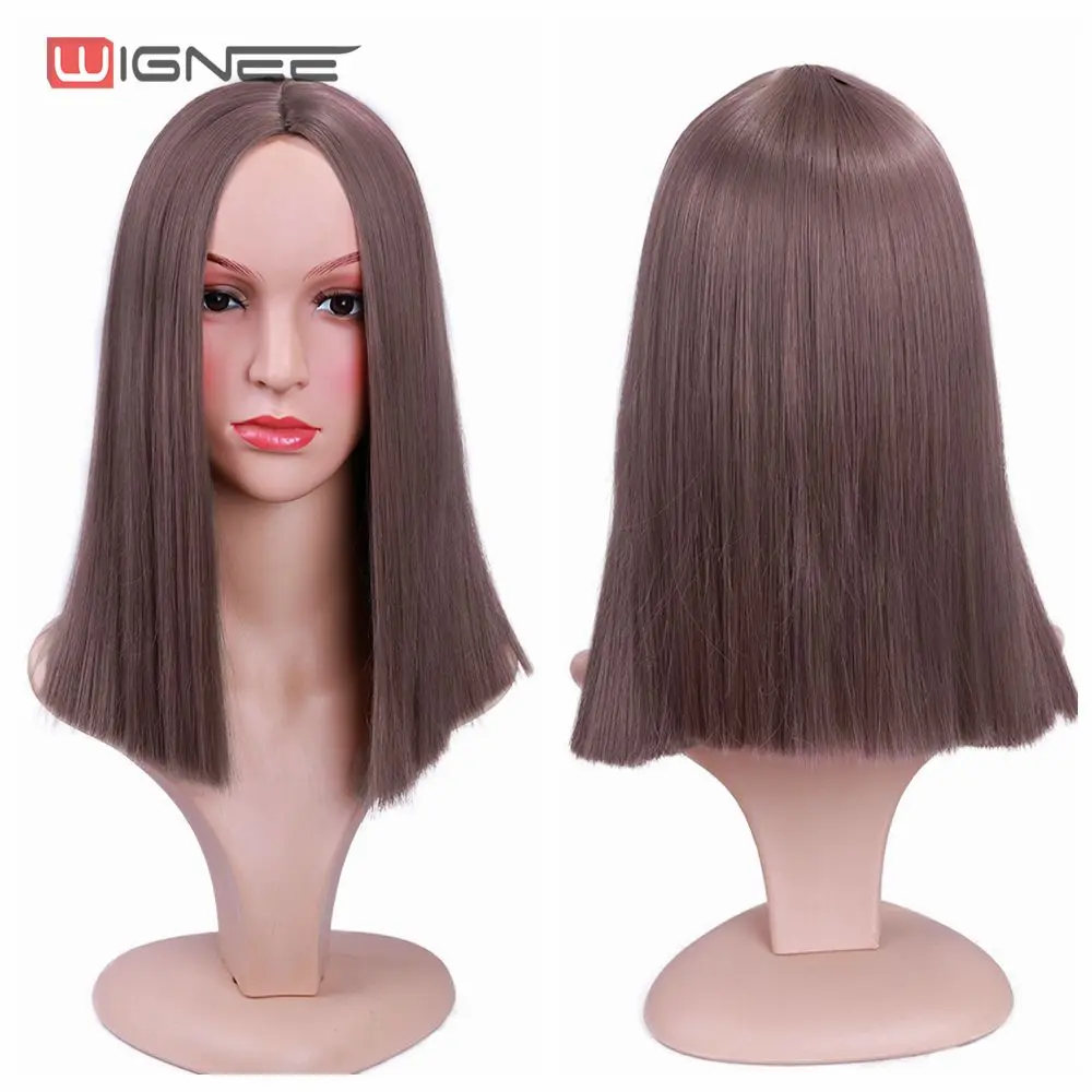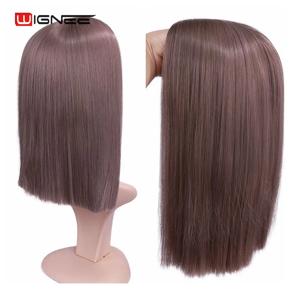 Wignee натуральные черные короткие прямые синтетические парики для женщин, термостойкие Yaki пушистые волосы, розовый/коричневый/светлый натуральный парик