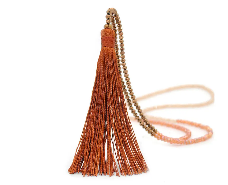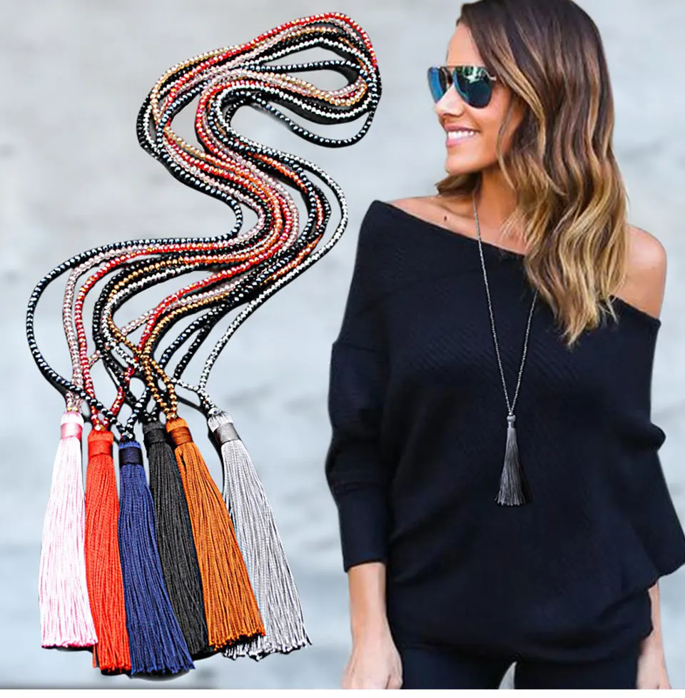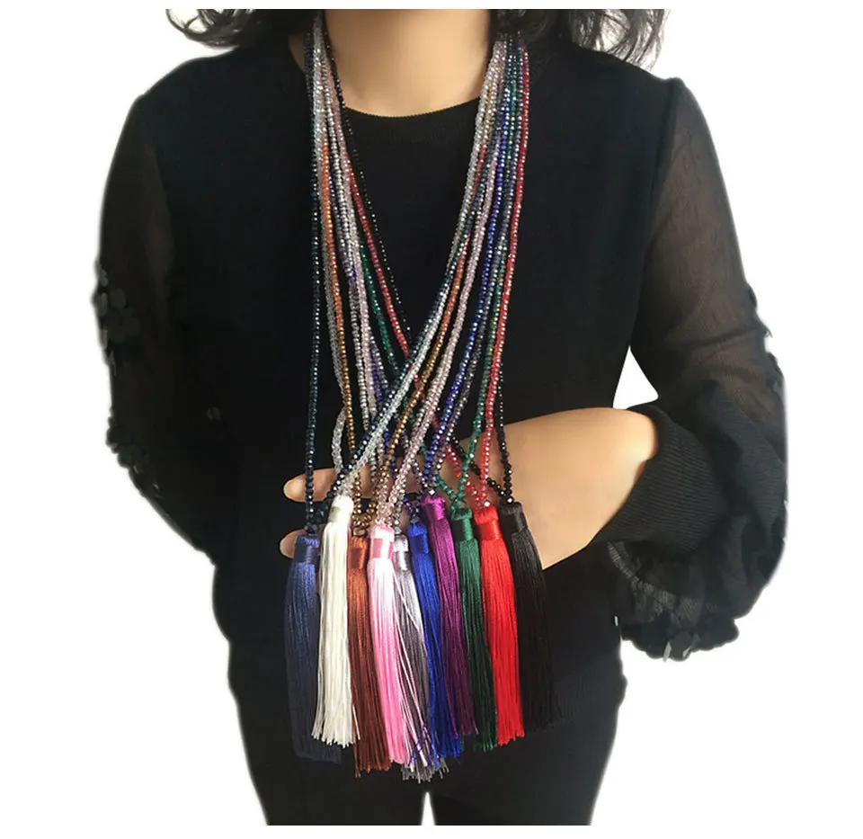JOUVAL Новые Элегантные богемные женские длинные кисточки, эффектные ожерелья с бахромой, стеклянный бисер, кристалл, этнический кулон, ожерелье, ювелирное изделие, подарок