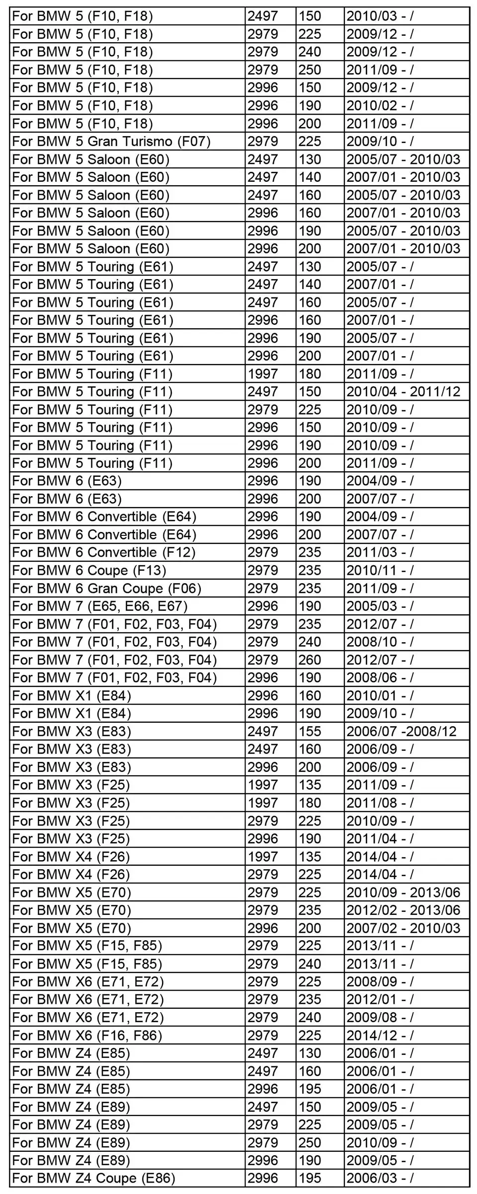 Fitment: пожалуйста, посмотрите таблицу совместимости или изображение fitment.
