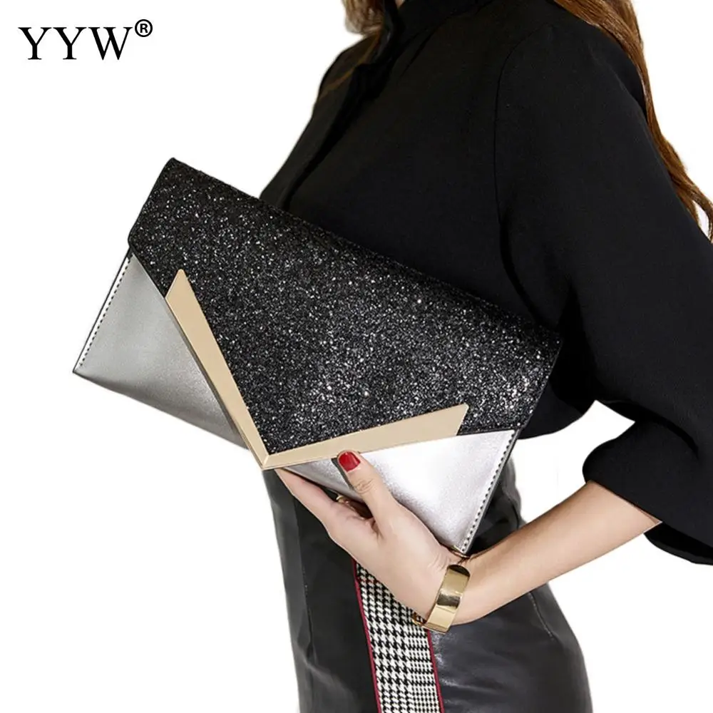 Модный клатч-конверт с блестками и сумка на плечо золотисто-черная сумка-мессенджер для деловой работы, банкетный клатч для вечеринки