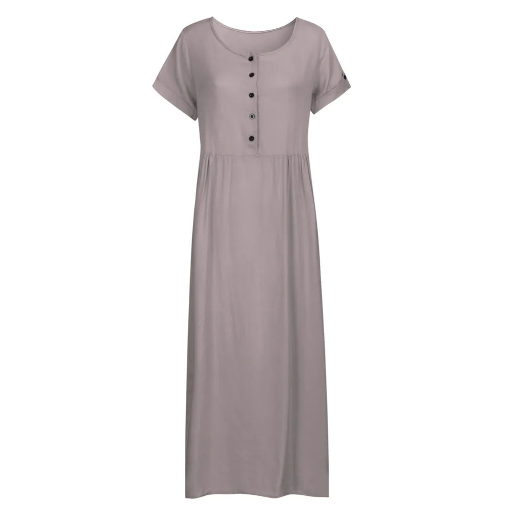 Женское повседневное однотонное платье с v-образным вырезом на пуговицах
