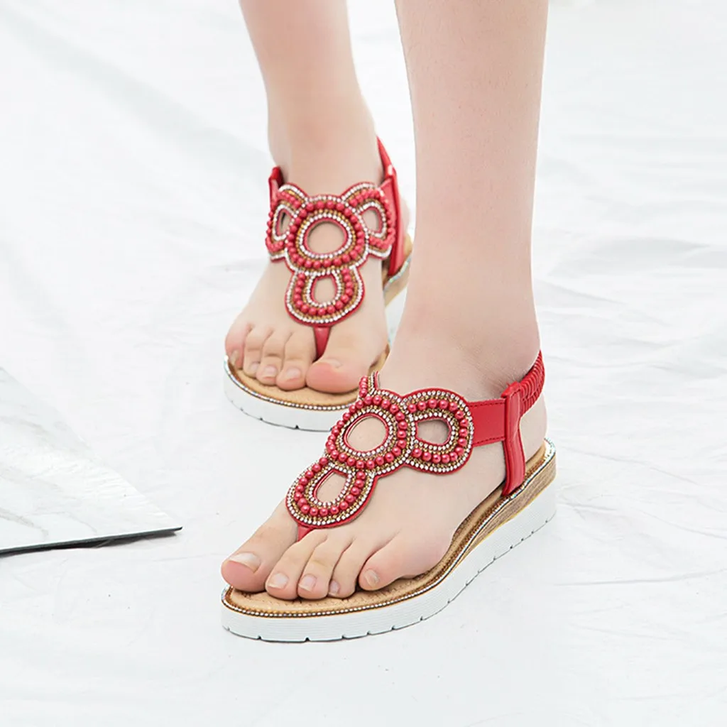 Летние женские сандалии на плоской подошве в богемном стиле; пляжная повседневная обувь