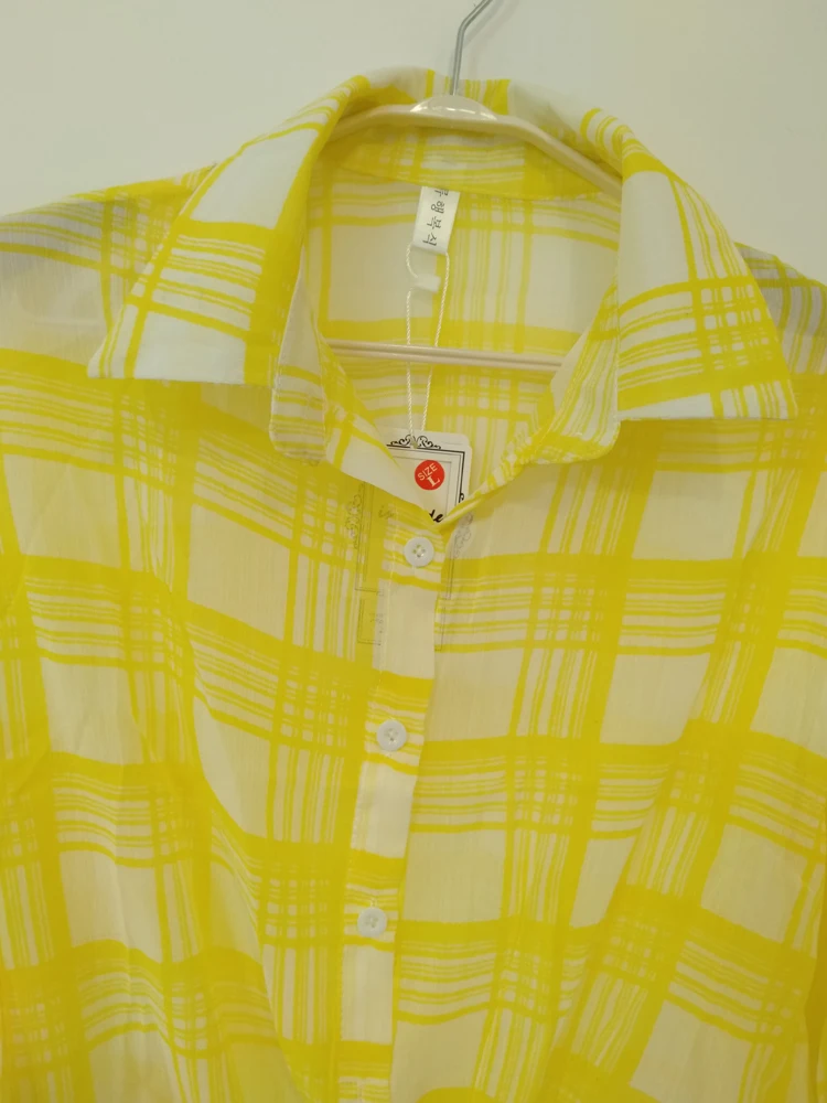 Женская шифоновая рубашка в клетку с отложным воротником, синяя, зеленая, желтая короткая рубашка с коротким рукавом, лето-осень 2019