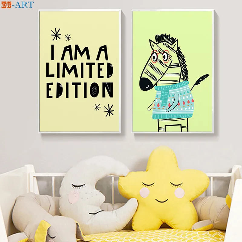 Картина на холсте с принтом медведя зебры, Синий Зеленый Детский Настенный декор для мальчиков, декоративные картины для спальни