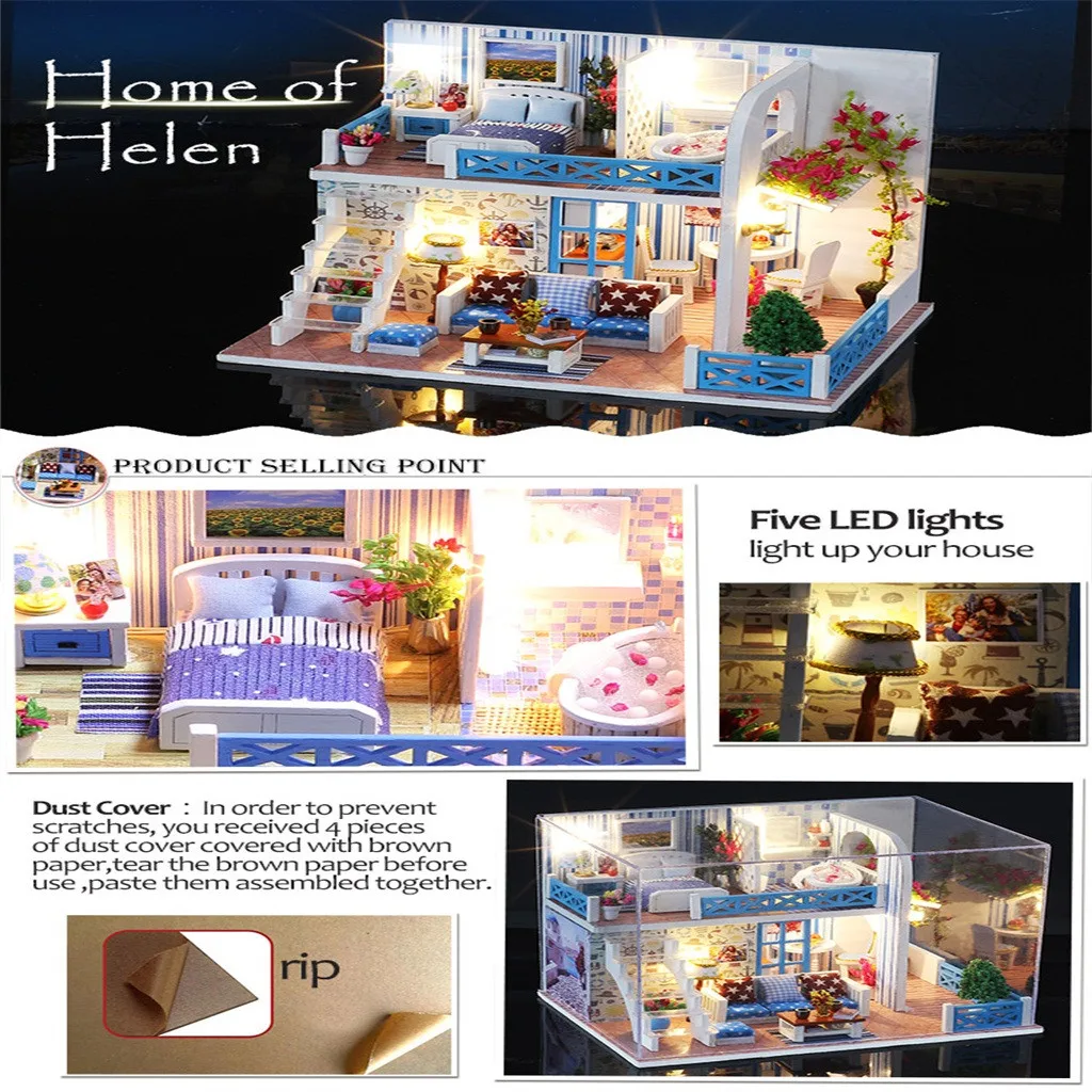 Деревянный кукольный домик DIY Миниатюрная модель головоломка кукольная мебель детские игрушки подарок