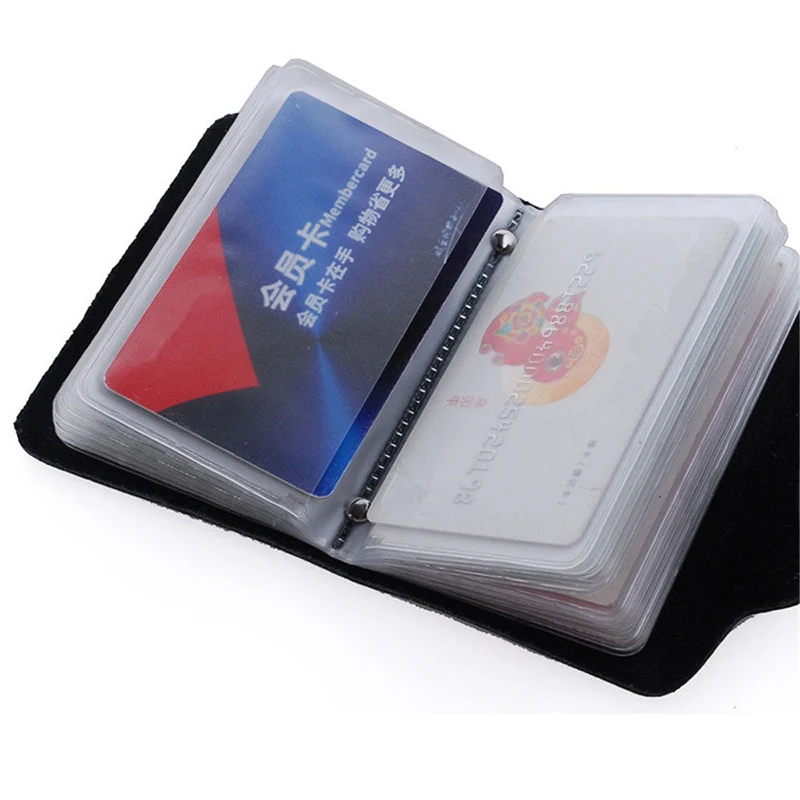 100% абсолютно новый и Высококачественный Цвет: черный Материал: искусственная кожа Технические характеристики: 12 карт/24 карты Упаковка: 1 держатель для удостоверения личности