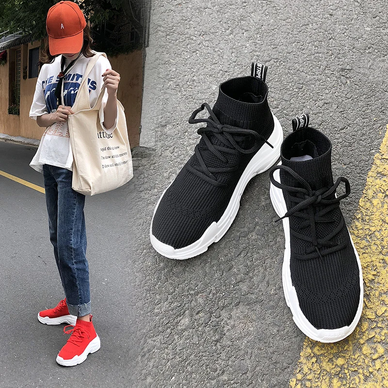 Женские кроссовки с высоким берцем, черные, красные дышащие сетчатые кроссовки, увеличивающие рост, спортивная обувь для женщин
