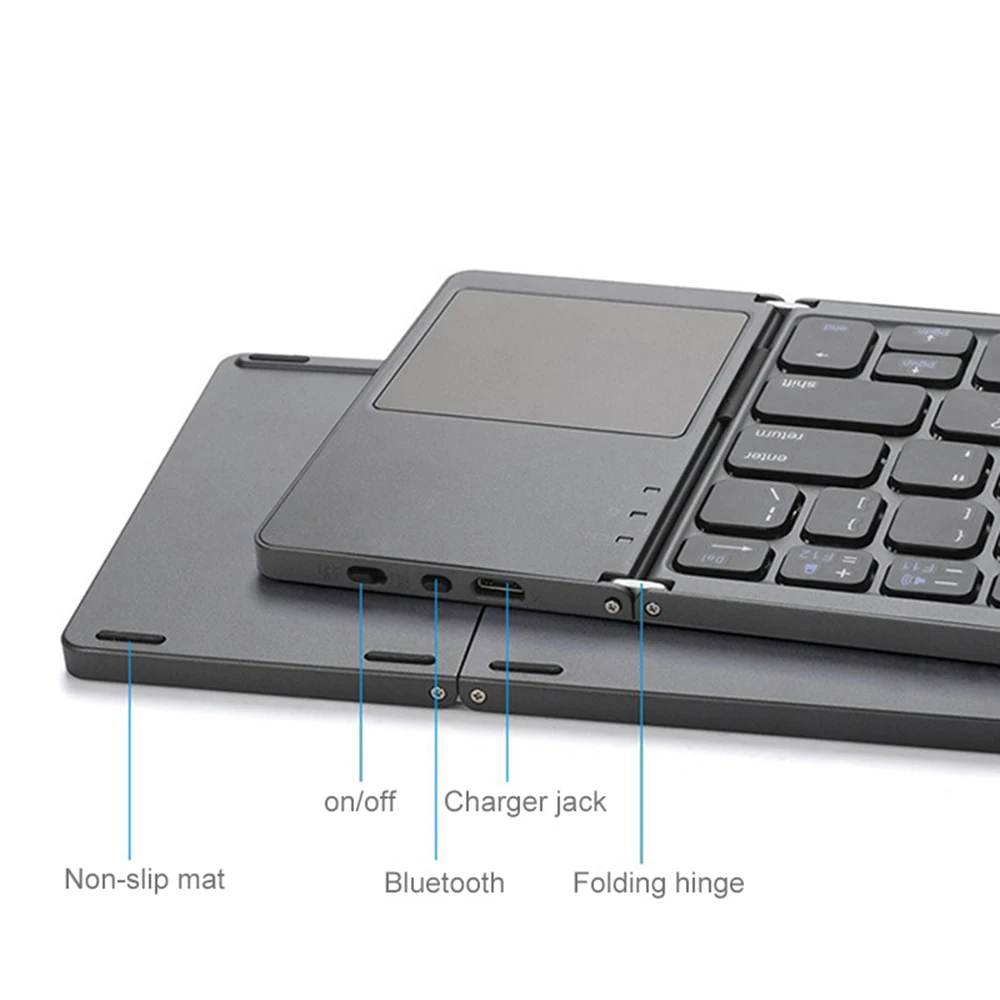 Основная особенность:1. Легкий и прочный-авиационный алюминий выдерживает суровость ежедневного путешествия, Отличное ощущение ввода текста.2. Совместимость-использование с устройствами с поддержкой Bluetooth дома или на ходу, подходит для Windows, Android и iOS. (сенсорная панель недоступна для iOS)3. Готовы к отдыху и путешествиям-зачем приносить громоздкую клавиатуру? Поддерживайте эффективность работы с вашим смартфоном или планшетом, попрощайтесь с крошечными клавиатурами для экрана телефона.4. Перезаряжаемый-работает до 48 часов (560 часов в режиме ожидания) от одной зарядки с встроенным литиевым аккумулятором B033 150mha5.X ключи конструкции-быстрая реакция и хорошие тактильные отзывы. Значительно улучшает скорость набора текста и комфорт.Характеристики:-Версия Bluetooth: 3,0-Емкость литий-ионного аккумулятора: 150 мАч-Рабочее напряжение: 3,7 V-Ток холостого хода: 0,25 мА-Рабочий ток: менее 3 мА-Рабочий ток сенсорной панели: менее 8,63 мА-Рабочее расстояние: менее 15 м-Материал кнопки: АБС-пластик-Русская раскладка клавиатуры: четырёхъядерный 64-разрядный процессор ключПримечание: 1. Не используйте во время зарядки,2. Держите подальше от воды, не водонепроницаемый.Широко применимыйДля: Windows ,Android ,IOS и т. Д... СистемыСовместимость: планшет, ноутбук, мобильный телефон, компьютер, телевизор или другое bluetooth-устройство.
