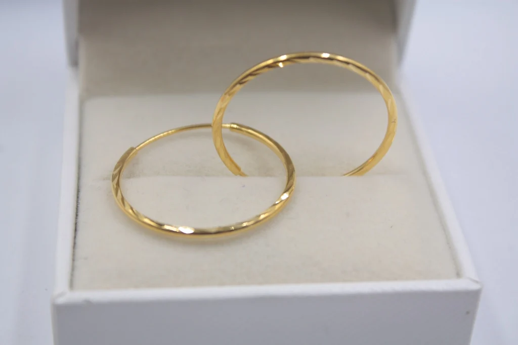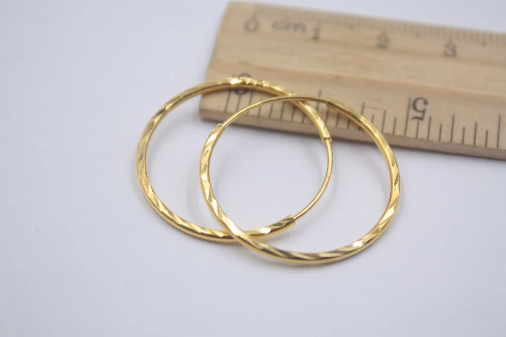 Mental: Настоящее 18 K желтое золото Внешний диаметр: 24 мм Ширина: 1,5 МВт Вес: 2,2-2,5 г Отличительная черта: Au750 Примечание: пожалуйста, внимательно проверьте размер и картинку, я взял их сам. Хорошее качество, деликатное Искусство и ремесла Случаи: свадьбы, вечеринки, юбилей, фестивали и т. Д.
