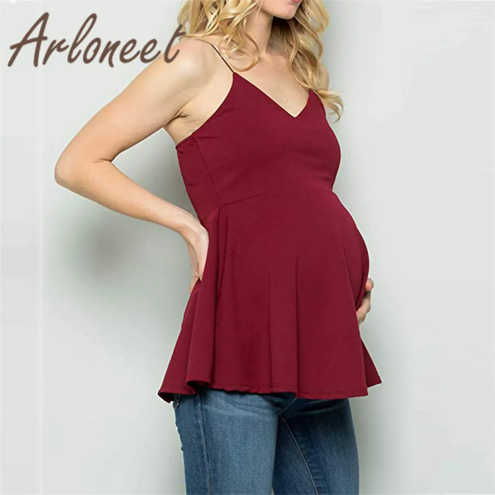 ARLONEET Женская одежда, топы для беременных, хлопковая футболка на бретелях с v-образным вырезом, большие размеры, однотонные летние топы для женщин, одежда для беременных