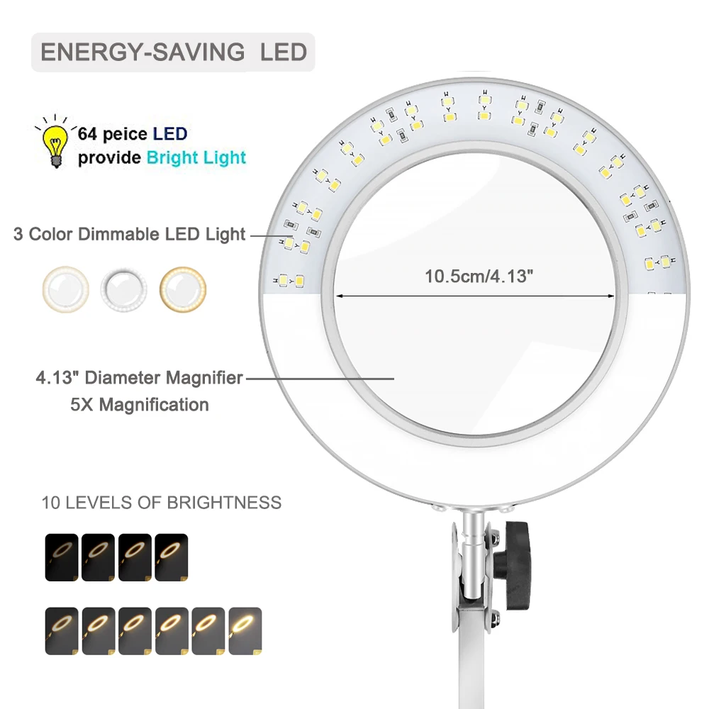 3. Увеличительное стекло со светодиодной подсветкой, цветовая температура светодиодного света может регулироваться в 3 шага, а яркость может регулироваться в 11 шагов, она может удовлетворить различные рабочие условия.