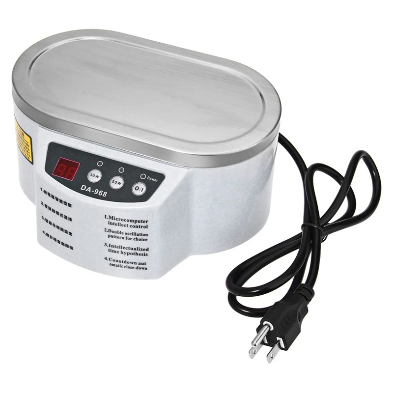 Удалите грязь, пыль, жир из самых маленьких мест с помощью ультразвуковой технологии, подходит для очистки ювелирных изделий, очков, печатных плат, орнаментов, головных уборов, брошек, ручек, CD, зубных щеток, зубных щеток, бутылка для молока, фрукты, часы, точные инструменты и т. Д.
