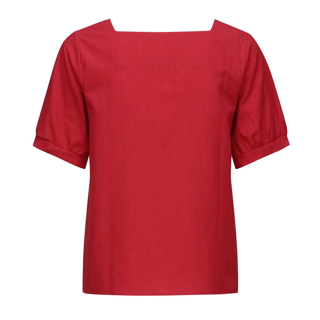 Модная женская Повседневная Свободная футболка с круглым вырезом и коротким рукавом из хлопка и льна