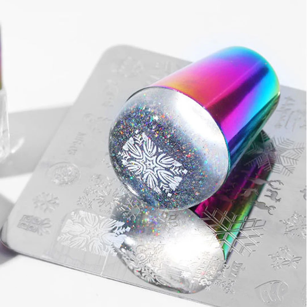 Радужный цвет с большой ручкой лазерный силиконовый штамп для дизайна ногтей инструменты для штамповки