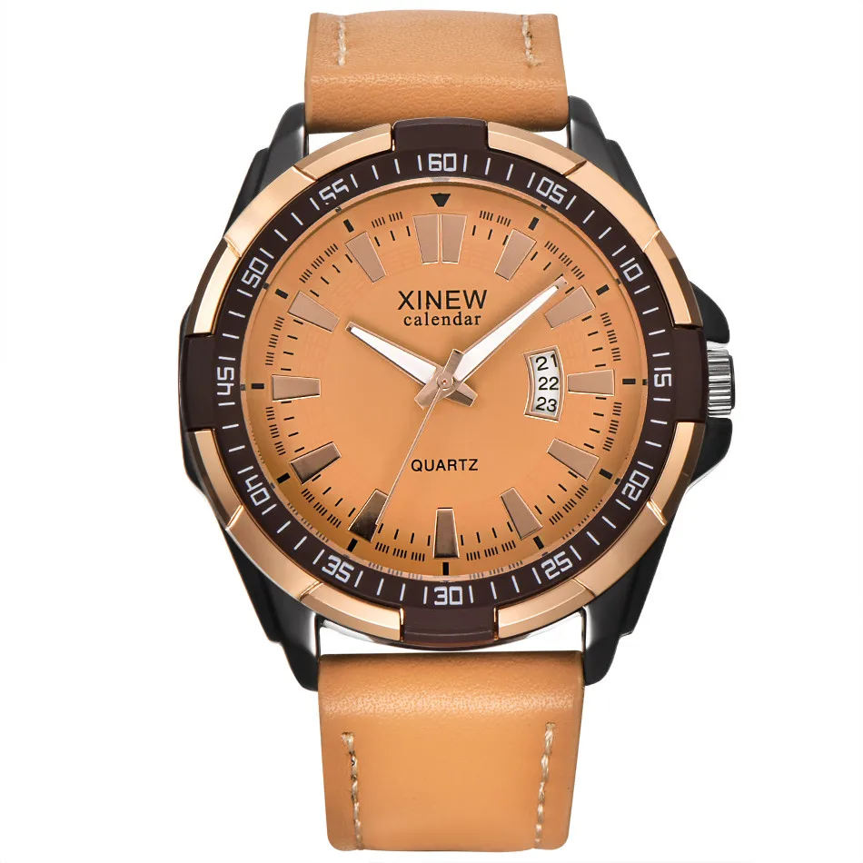 XINEW 2019 Популярные Роскошные спортивные часы с хронографом, Мужские кожаные кварцевые часы для бега, бесплатная доставка, наручные часы Wd3