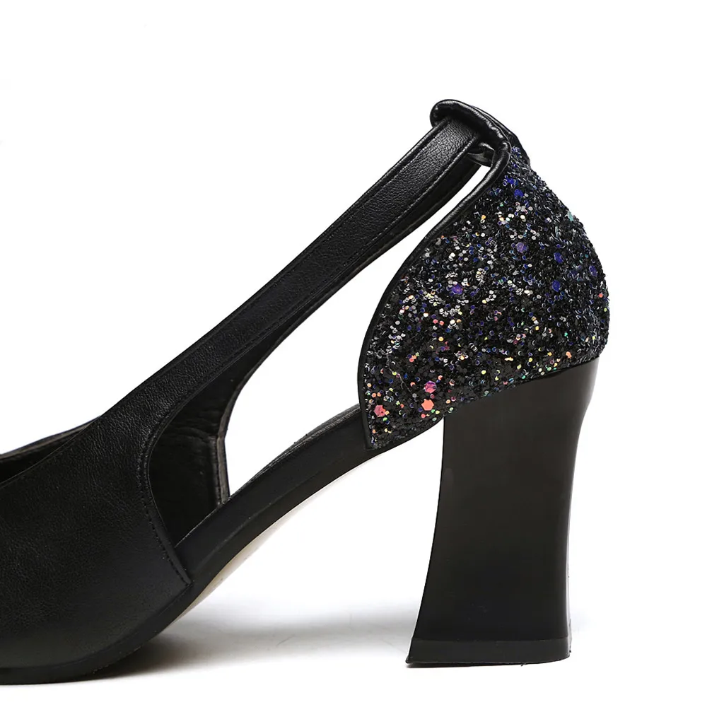Женская модная повседневная обувь на высоком каблуке с открытым носком и кристаллами; босоножки для работы