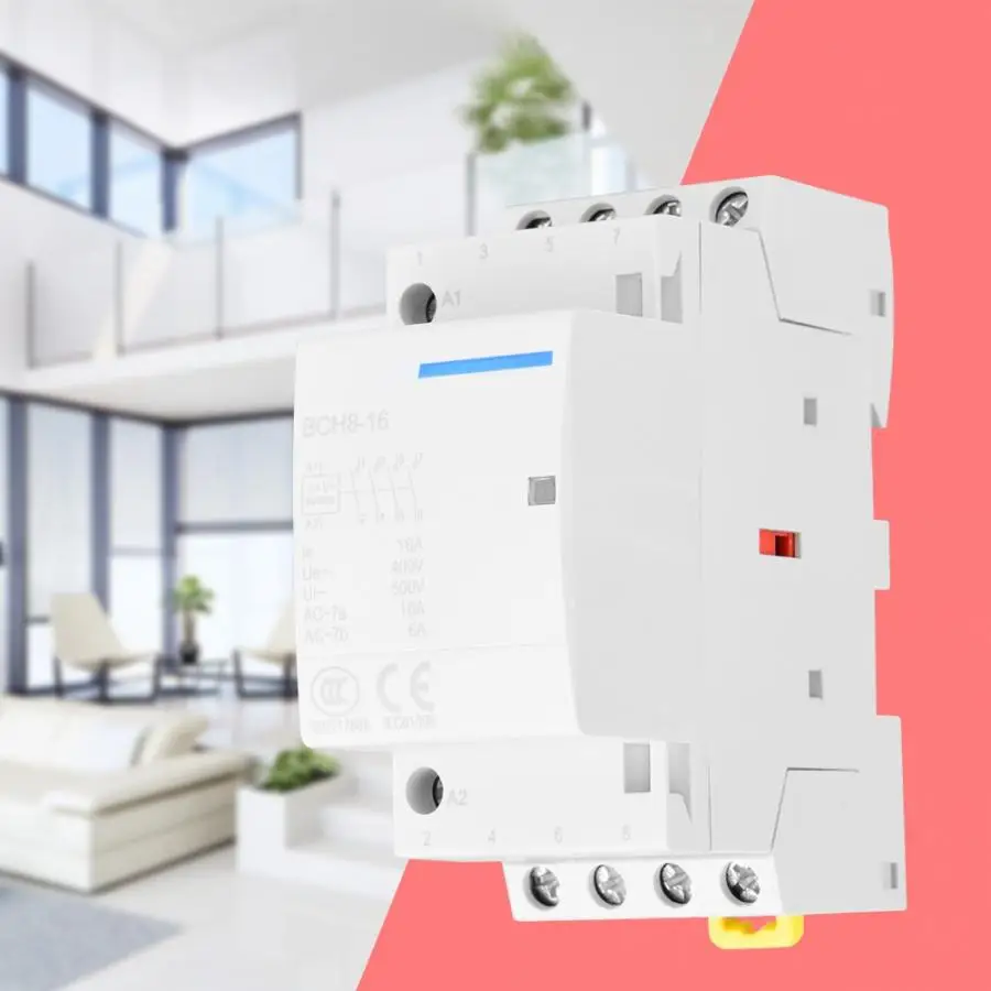 Предназначен для домашнего применения, крепление на din-рейку 35 мм. Принять Улучшенный изоляционный материал для повышения безопасности эксплуатации в значительной степени. Компактная модульная конструкция, легко монтируется. Схема проводки печатается на поверхности контактора. Отсутствие шума и электрической искры во время работы.
