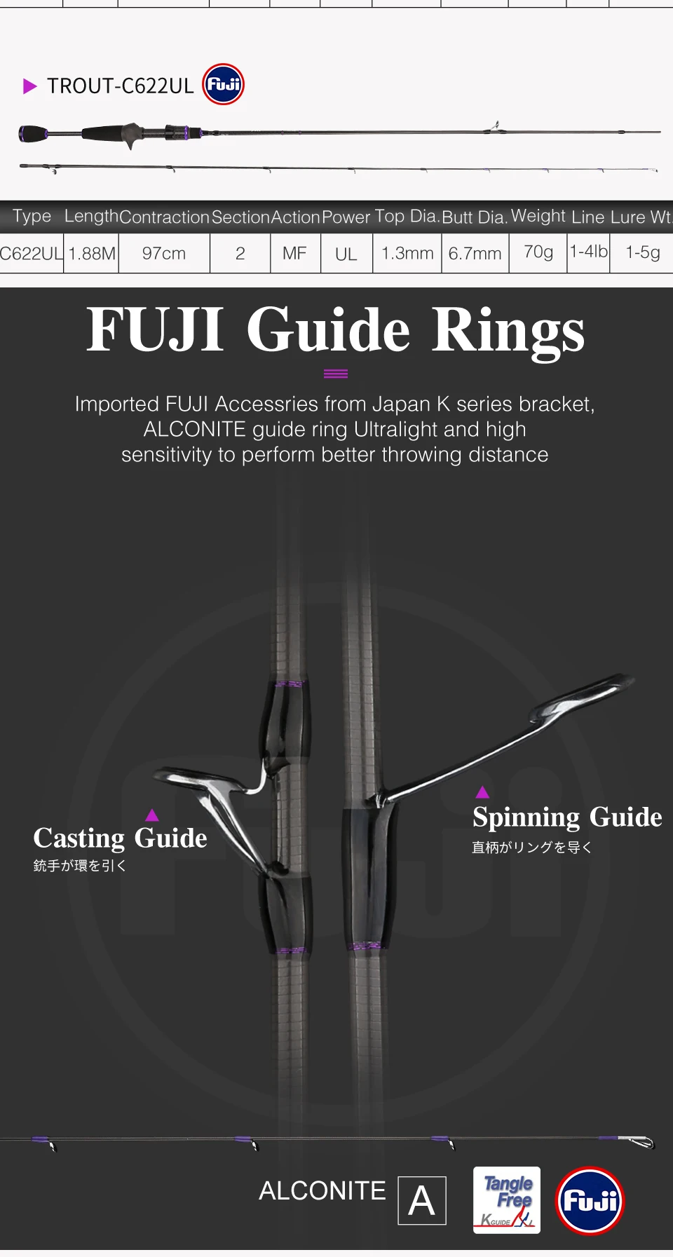 2. FUJI, импортированный из Японии кронштейн серии K, кольцо ALCONITE светильник легкая чувствительность к весу и Лучшая производительность броска