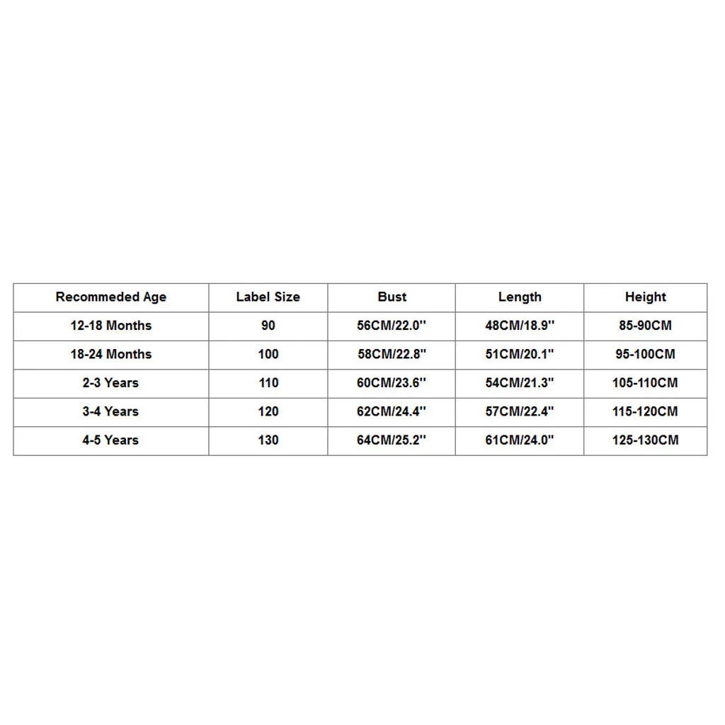 Рекомендуемый возрастЭтикетка РазмерыОбхват грудиДлинаВысота12-18 месяцев9056 см/22,0''48 см/18,9''85-90 см18-24 месяцев10058 см/22,8"51 см/20,1"Для детей ростом 95-100 смОт 2 до 3 лет11060 см/23,6''54 см/21,3"105-110 смОт 3 до 4 лет12062 см/24,4''57 см/22,4"115-120 смОт 4 до 5 лет130Высота голенища 64 см; 25,2''61 см/24,0"125-130 см