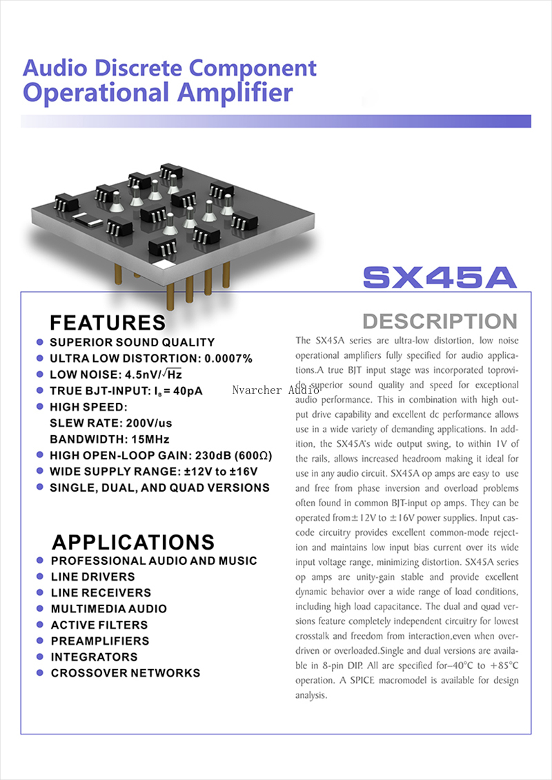 Дискретный компонент single op amp SX45A использует технологию транслинейного режима тока для обновления предварительного этапа, декодера DAC, усилителя для наушников, усилителя phono и электронного Делителя Частоты.