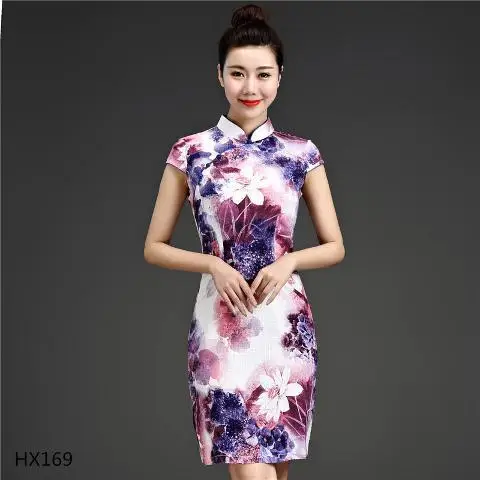 Китайское традиционное платье Sheng Coco 5XL, эластичное льняное хлопковое китайское Ципао с принтом, короткое усовершенствование, эластичный чонсам