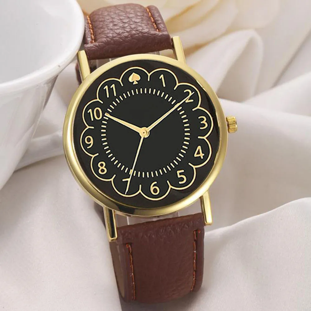 Женские Аналоговые кварцевые часы с кожаным ремешком в стиле ретро, коричневые наручные часы для девушек, 2019