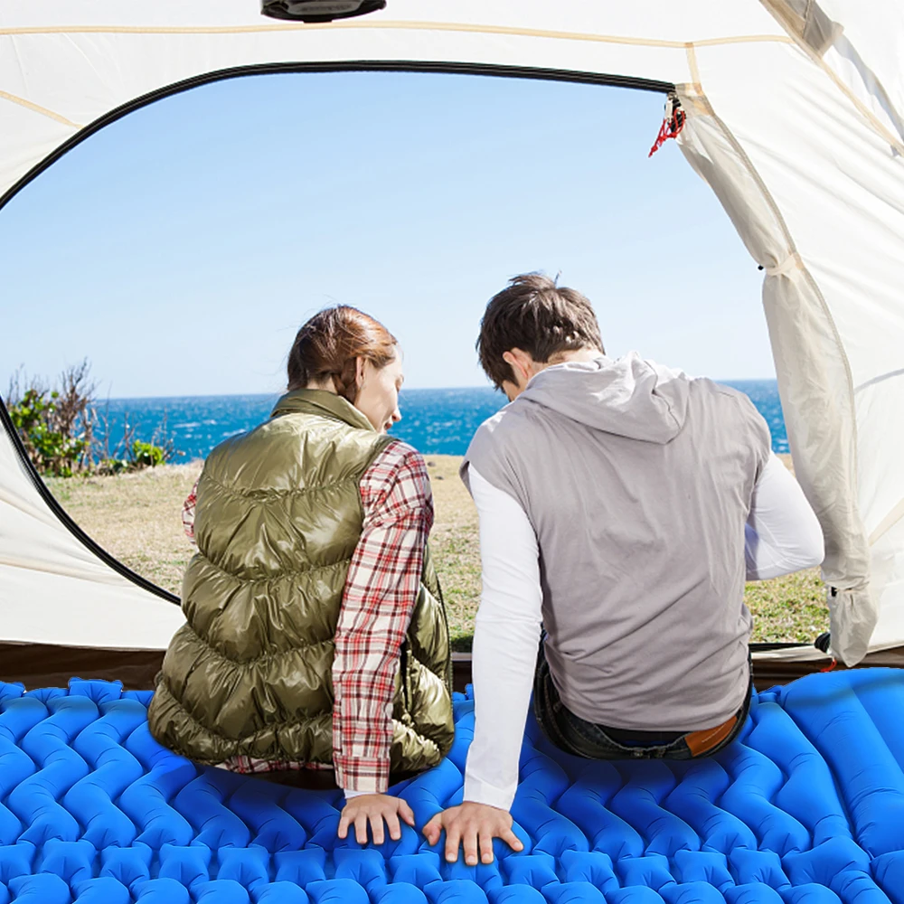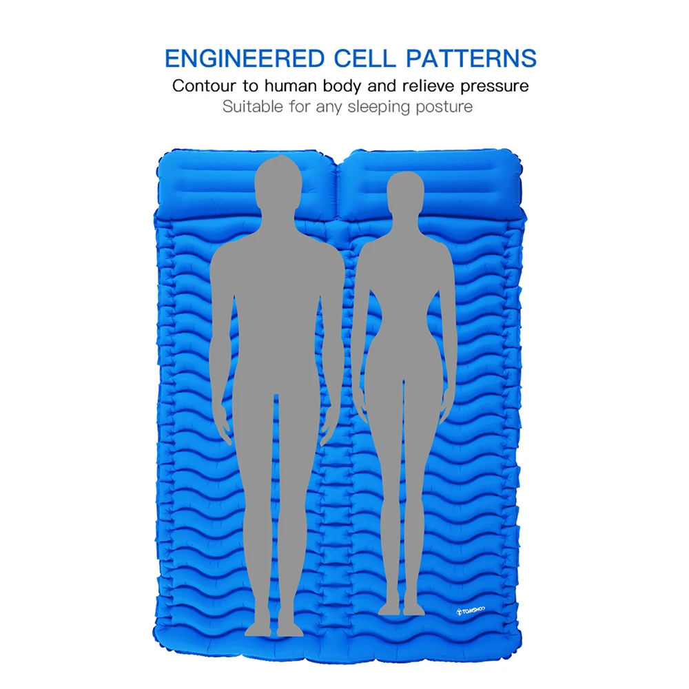Этот коврик для кемпинга с подушкой для 2 человек изготовлен из нейлоновой ткани 40D ripstop с ламинированием из ТПУ, водостойким и прочным. С клапаном быстрого потока, вы можете надуть прокладку в течение 3 минут. Его гибкая структура также идеально подходит для стула или гамака, под/внутри вашего спального мешка, так что вы можете проводить комфортную жизнь даже снаружи. Упакуйте легкую спущенную подкладку в мешок для хранения и положите ее в рюкзак, чтобы организовать новое путешествие.