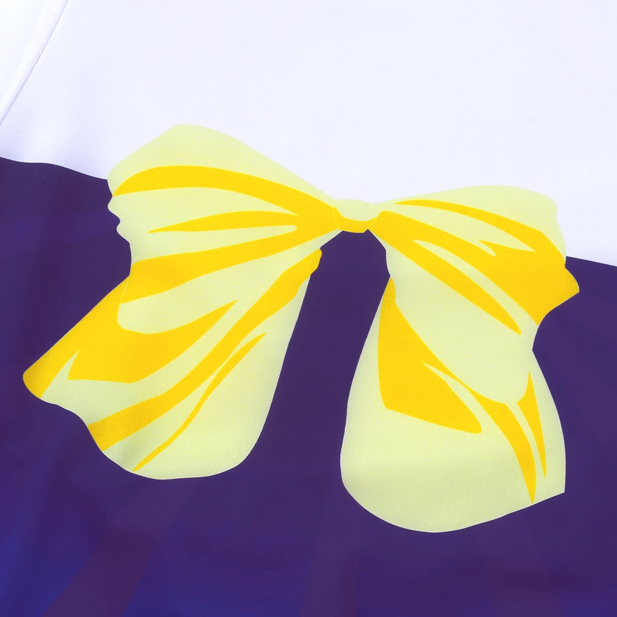 Глубокий u-образный вырез и короткий рукав, цветной рисунок бантов и матросский воротник спереди и сзади, застежка-молния.