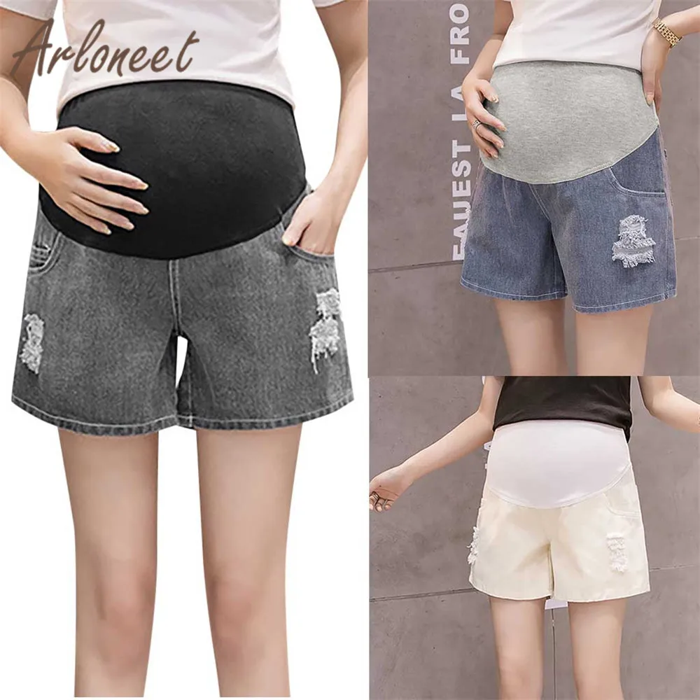 ARLONEET/женская одежда; Шорты для беременных с высокой талией; Простые однотонные джинсовые шорты; Летние женские джинсы; Повседневная одежда