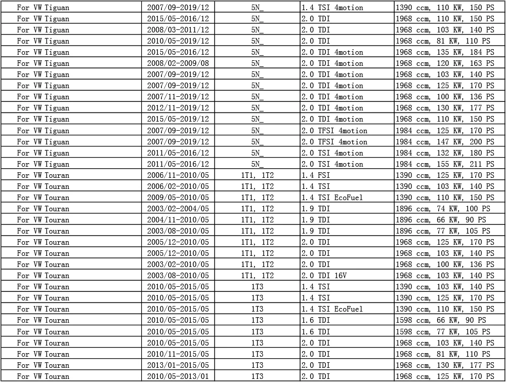 Для Volkswagen VW Passat 3C2 362 Alltrack 365 CC 357 Variant 3C5 365 Tiguan 5N _ Touran 1T1, 1T2 1T3