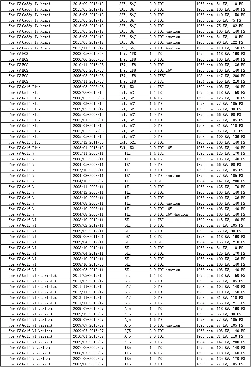 Для Volkswagen VW Golf Plus 5M1, 521 V 1K1 VI 5K1 VI Cabriolet 517 VI вариант AJ5 V вариант 1K5