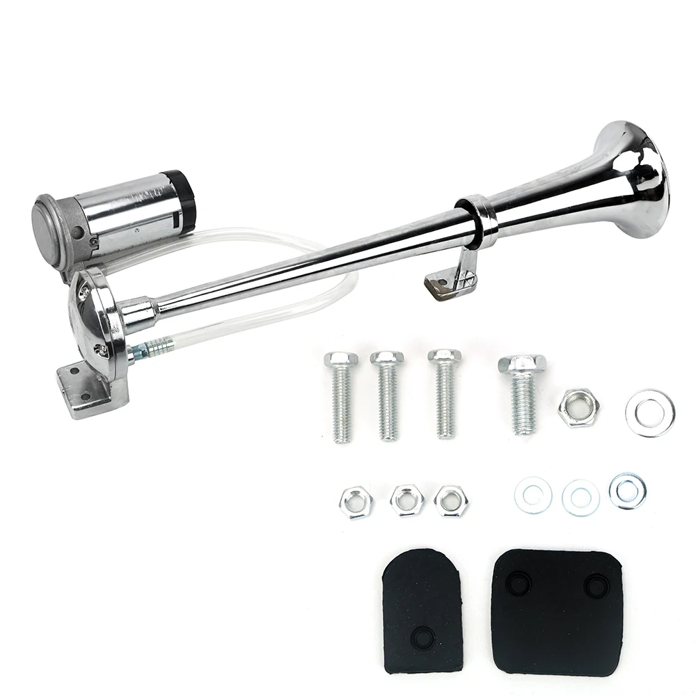 Особенности: Одна труба, не требуется Воздушная система. Легкая посадка, блестящая хромированная отделка и настроенный звуковой сигнал поезда. Подходит для автомобилей, грузовиков, лодок, мотоциклов, любых транспортных средств 12 В. Длина трубы: 450 мм, ширина трубы: 95 мм. Крепежные винты и кронштейны в комплекте. Может поместиться практически в любом транспортном средстве, но обеспечивает большой звук, который вам нужен. Материал: пластик, металл Размер: как на картинке