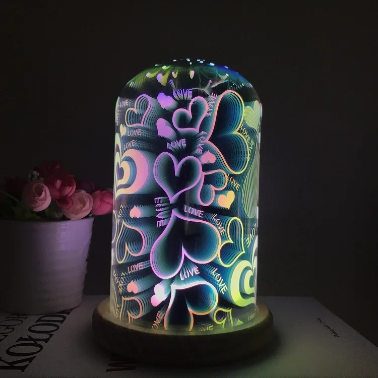 Hinnixy фейерверк стеклянный ночник крутая Звезда Любовь 3D Волшебная атмосфера декор для спальни настольная лампа День Независимости креативный подарок