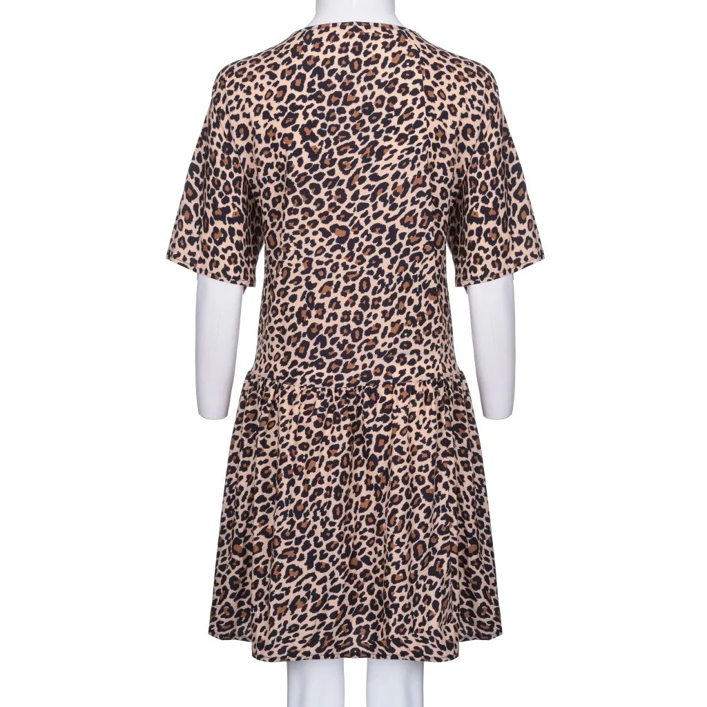 Сексуальное женское модное открытое Повседневное платье на пуговицах с леопардовым принтом