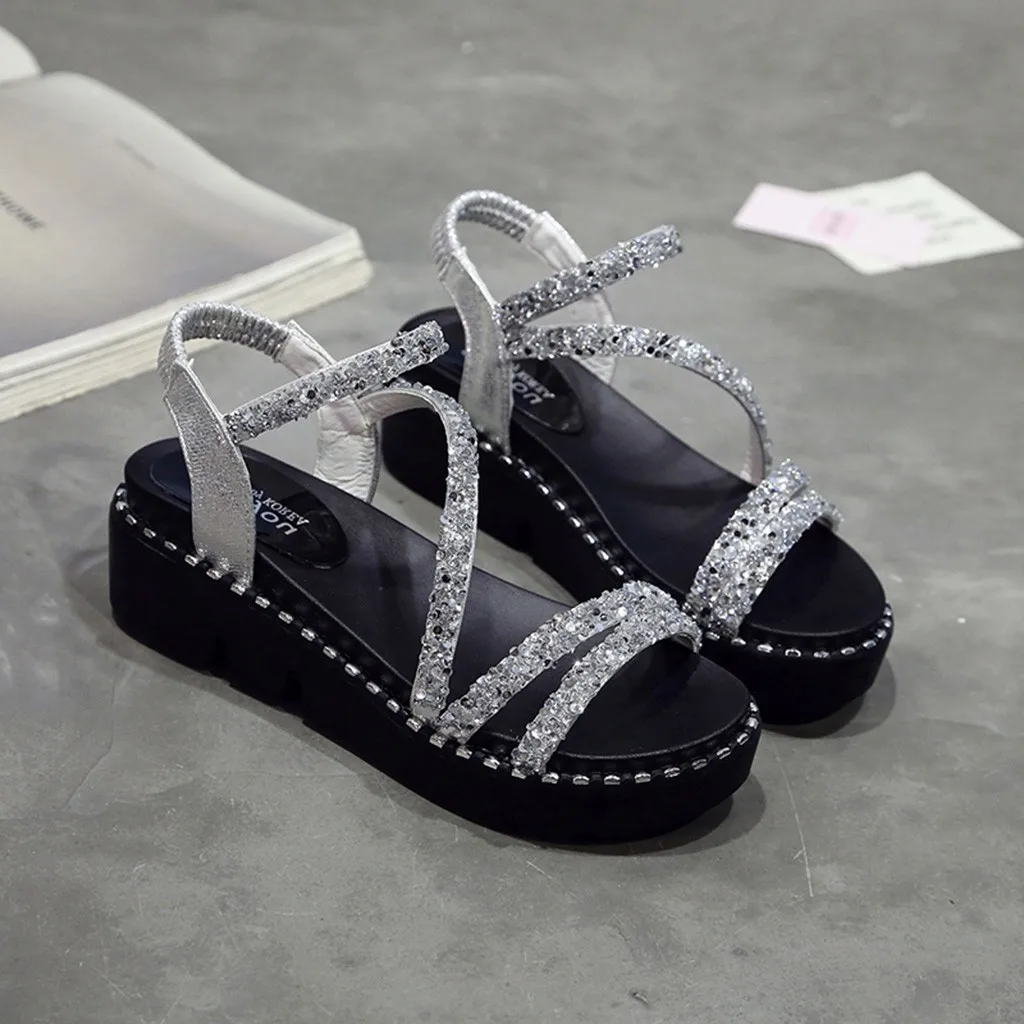 Женские босоножки; Летняя обувь; Модные женские повседневные сандалии на танкетке с украшением в виде кристаллов; модная женская повседневная обувь с открытым носком
