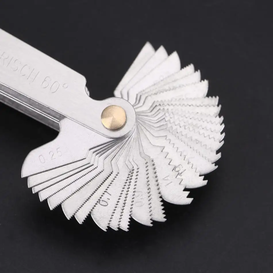 58 шт.Система США с резьбовой резьбой + дюйм. Обычно используется для проверки правильного определения размера резьбы. Дизайн Notch, когда используется в at the tooth, можно поворачивать, переключение циферблата, легко и удобно. Специальные измерительные инструменты, шаг резьбы для проверки. Используется для измеренияСистема США + + дюймСистема. Толстая продукты, с переключением между дальним и толщина 0,5 мм позволяет легко снимать и надевать цепочку, длительный срок службы. Ясным масштабом: образец масштаб ясно, который обеспечивает широкий угол обзора, простых в использовании.