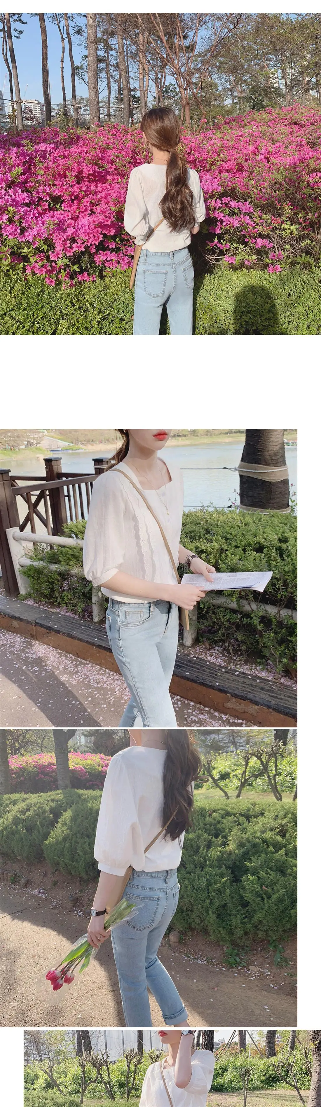 Летние милые топы, популярные женские милые топы с коротким рукавом для девочек в консервативном стиле, лоскутный вязаный кружевной топ, рубашка на пуговицах, одежда в Корейском стиле