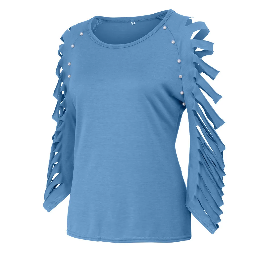 1.Особенности: с вырезами, с бисером, с круглым вырезом, с вырезами, с рваными рукавамиПовседневные однотонные ТопыПовседневная одежда, стильМодный дизайн; Летние повседневные топы; Простая футболка.