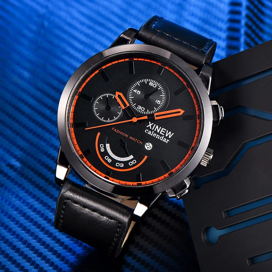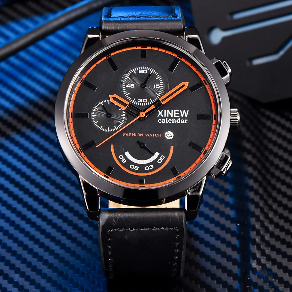Мужские классические кварцевые армейские часы XINEW, водонепроницаемые спортивные часы с кожаным ремешком, бесплатная доставка, Wd3, 2019