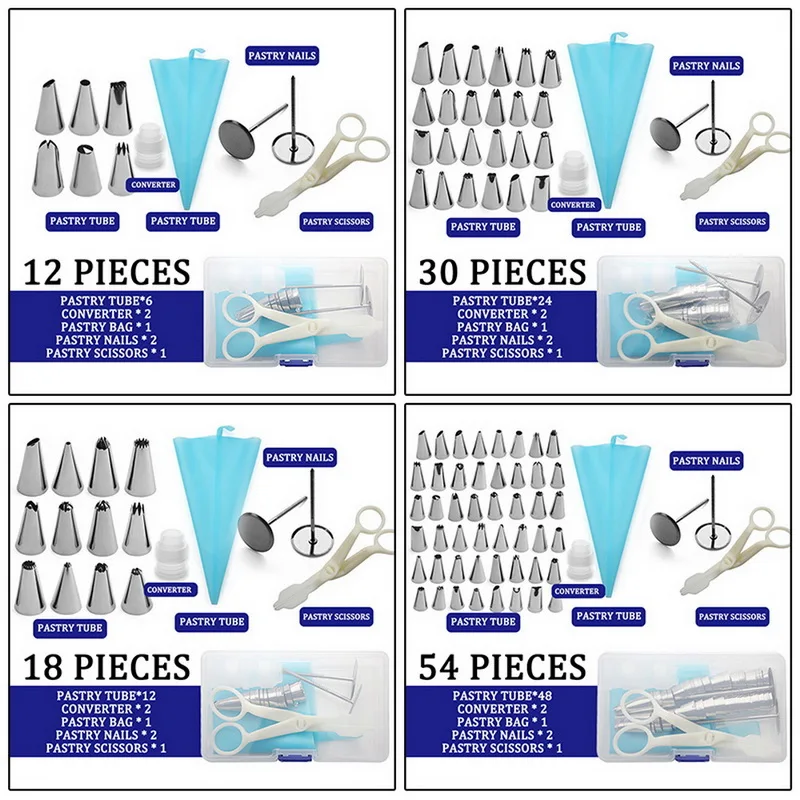 Набор 4: 54 в 1: 48 насадок для глазури, 2 муфты, 1 кондитерский мешок из ТПУ, 2 цветочных ногтя, 1 подъемник для цветов