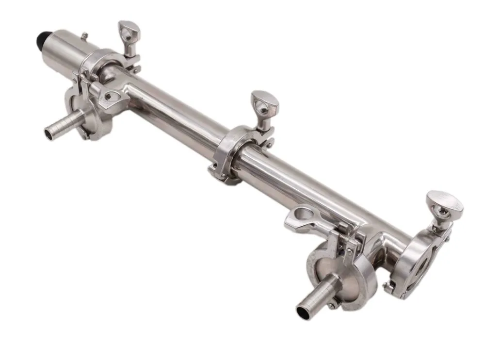 Он оснащен всеми тремя зажимными фитингами для легкой разборки и очистки. При разборке, вы можете пройти чистку кисти через весь корпус трубки. На входе и выходе особенность 1,5 "Tri Зажим наконечники.