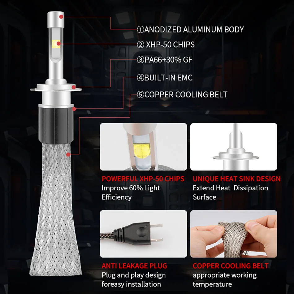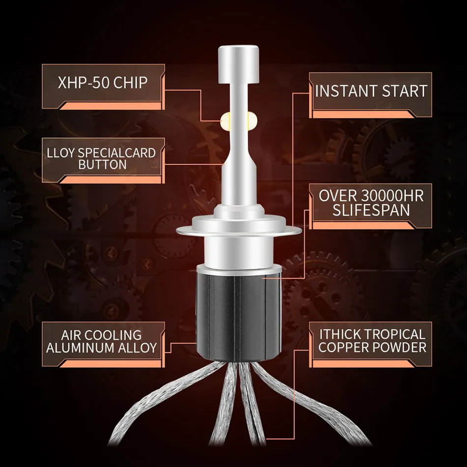 Характеристики: напряжение: 9 В-32 В постоянного тока Водонепроницаемость: IP68 срок службы: 50000 + часов Материал: красная медь и алюминиевый сплав световой поток: 8000лм/Мощность лампы: 60 Вт/лампа Доступные цвета: 4300K 6000K светодиодный датчик температуры.:<75 градусов светодиодный чип Производитель: CREE XHP50 особенность: Plug & play, нет необходимости резать провода низкое энергопотребление, длительный срок службы. На 100% ярче, чем галогенные фары. Защита от низкого напряжения, высокоточный чип постоянного тока. Встроенная схема IC (регулятор тока)-предотвращает повреждение светодиодный от изменений напряжения и шипов. До 30000 часов Услуги жизнь.