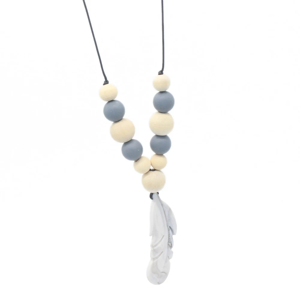 Детский грызунок силиконовые обучение Детский Прорезыватель для ношения на цепочке перо кулон цепочки и ожерелья жевательная игрушка чистка зубов Уход за полостью рта оптовая продажа