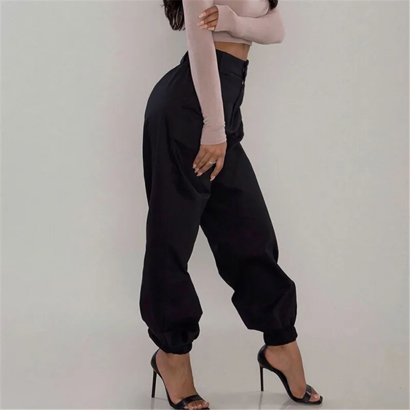 Женские повседневные свободные шаровары с высокой талией, элегантные женские длинные брюки, брюки черного/армейского зеленого цвета, модные рабочие брюки-карго!