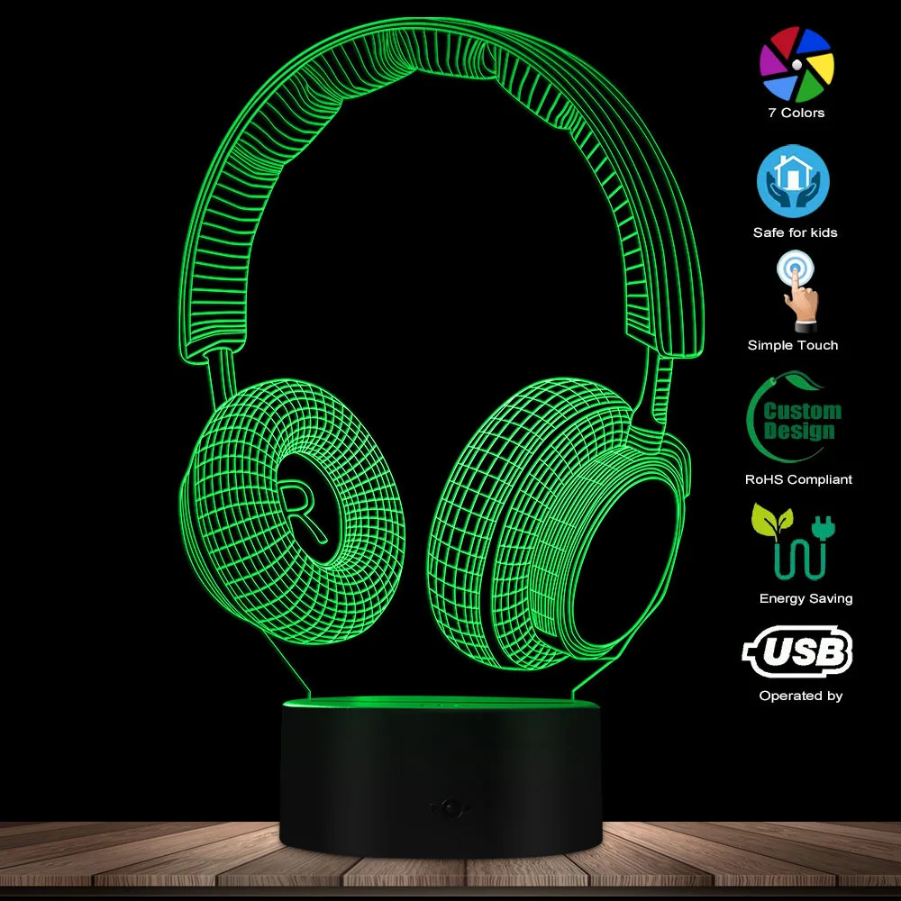 Наушники гарнитура 3D визуальный светильник