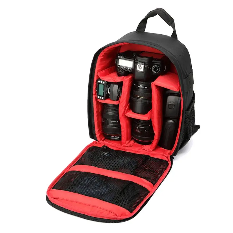 Стильный рюкзак с цветной подкладкой, совместимый с большинством цифровых зеркальных камер.